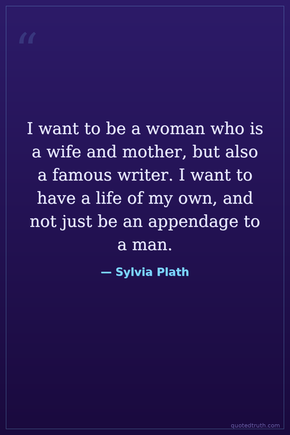 I want to be a woman who is a wife and mother, but also a famous writer. I want to have a life of my own, and not just be an appendage to a man.