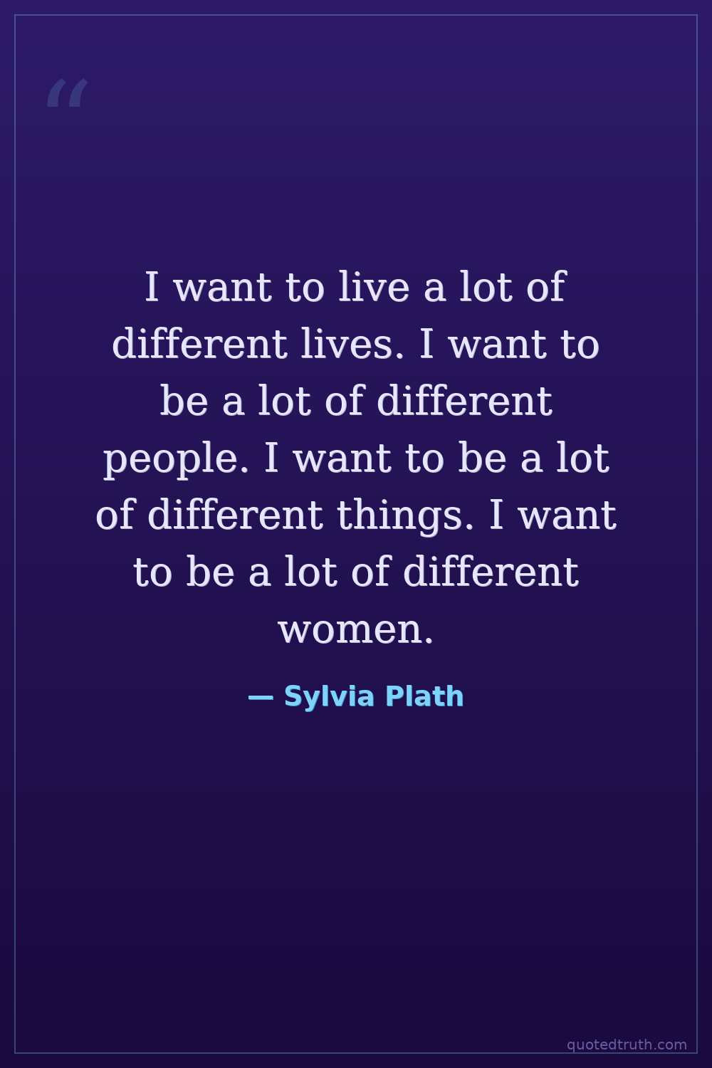 I want to live a lot of different lives. I want to be a lot of different people. I want to be a lot of different things. I want to be a lot of different women.
