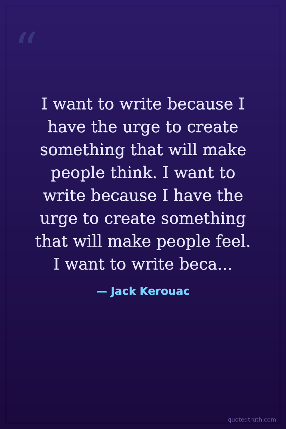 I want to write because I have the urge to create something that will make people think. I want to write because I have the urge to create something that will make people feel. I want to write because I have the urge to create something that will make people understand.