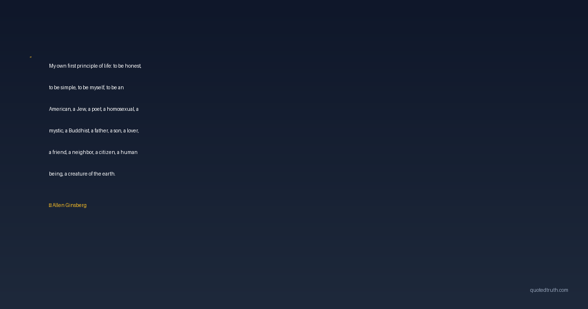My own first principle of life: to be honest, to be simple, to be myself, to be an American, a Jew, a poet, a homosexual, a mystic, a Buddhist, a father, a son, a lover, a friend, a neighbor, a citizen, a human being, a creature of the earth.
