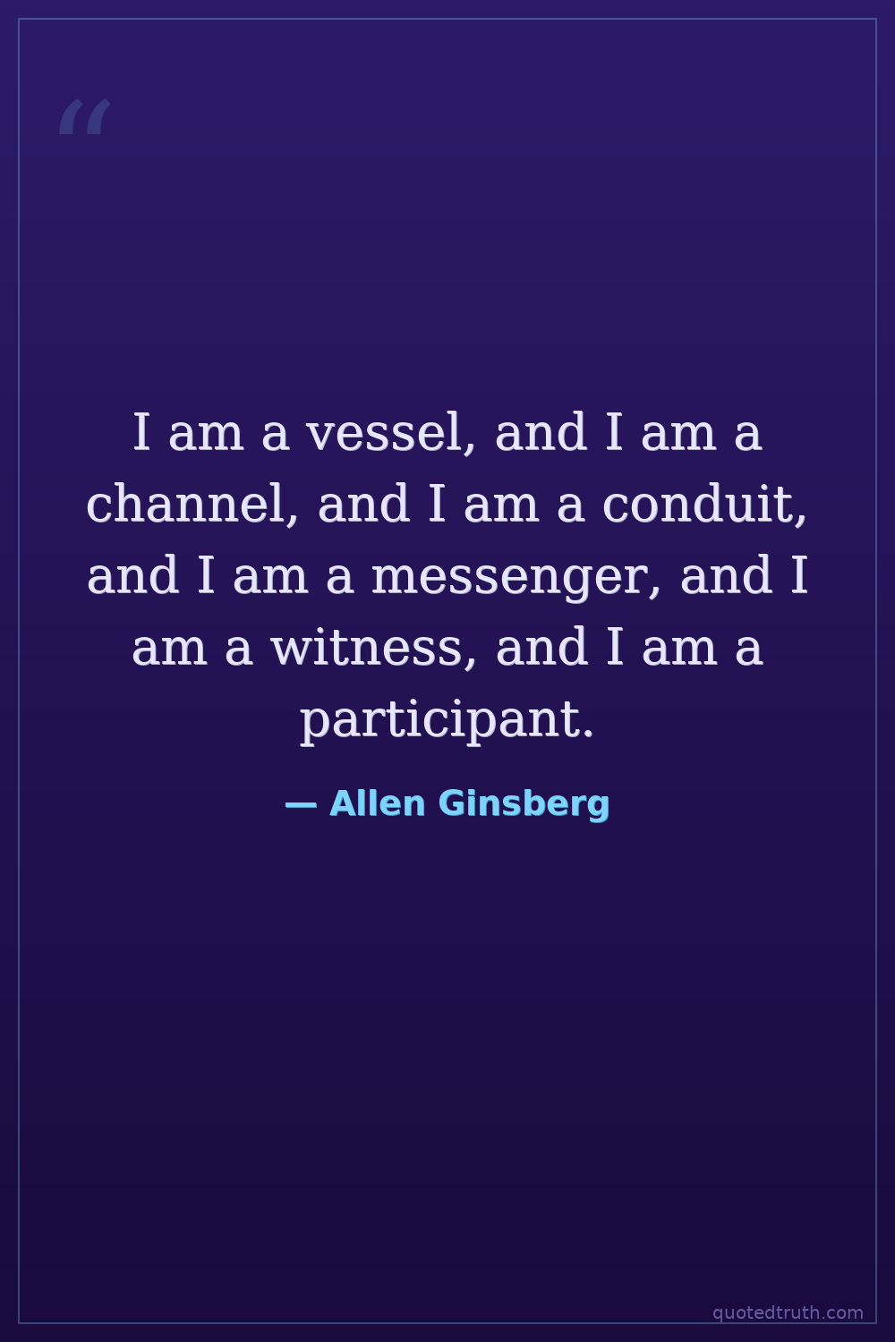 I am a vessel, and I am a channel, and I am a conduit, and I am a messenger, and I am a witness, and I am a participant.