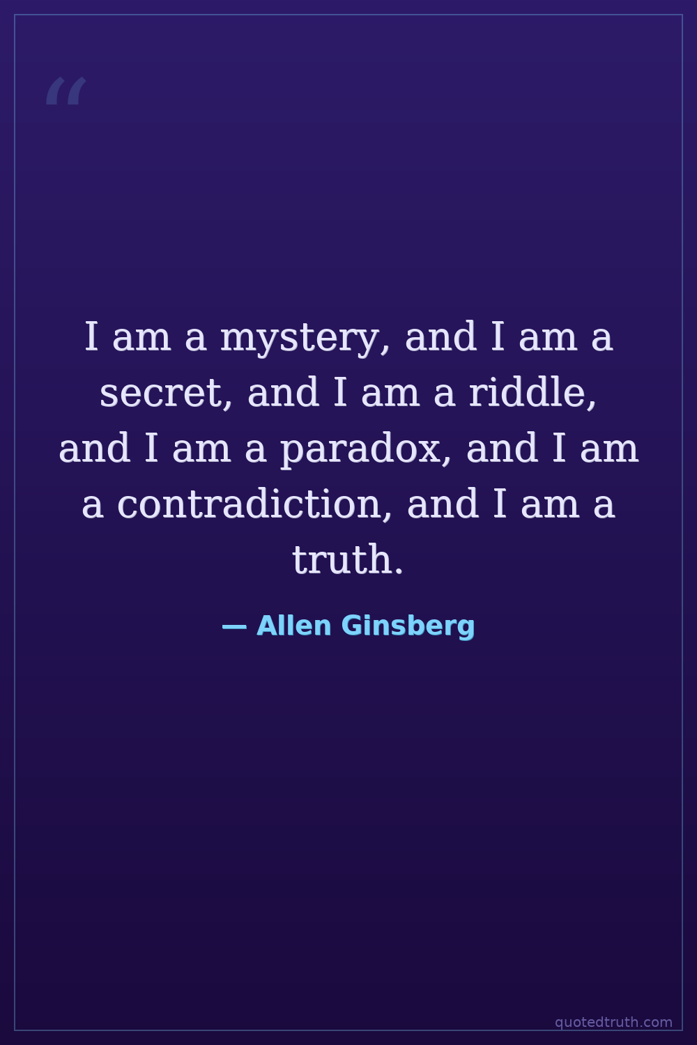 I am a mystery, and I am a secret, and I am a riddle, and I am a paradox, and I am a contradiction, and I am a truth.