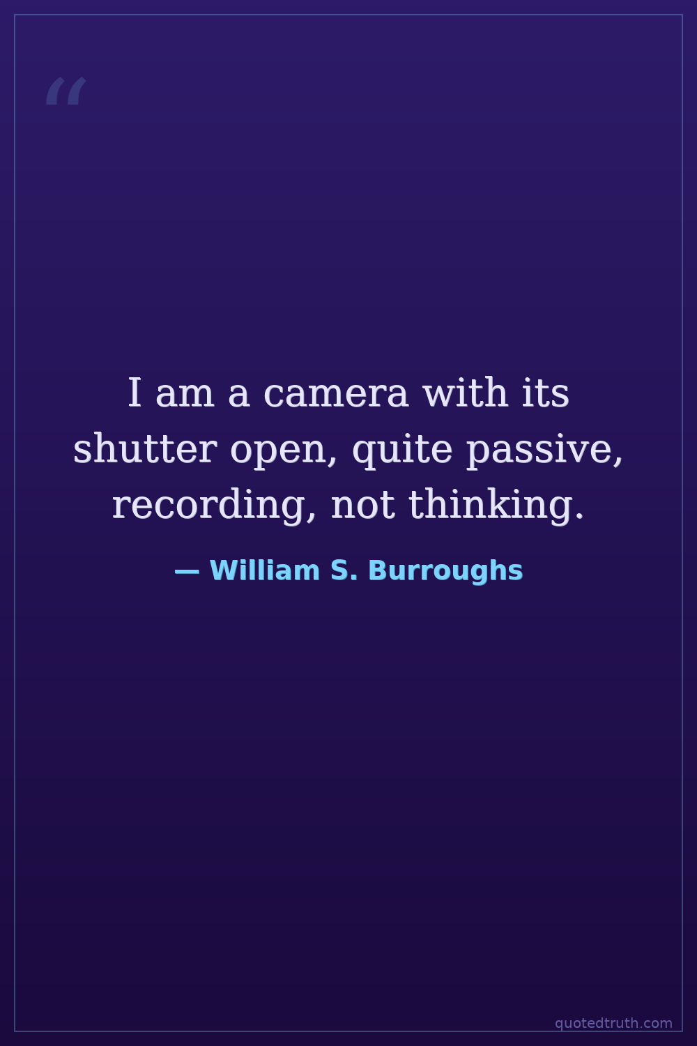 I am a camera with its shutter open, quite passive, recording, not thinking.
