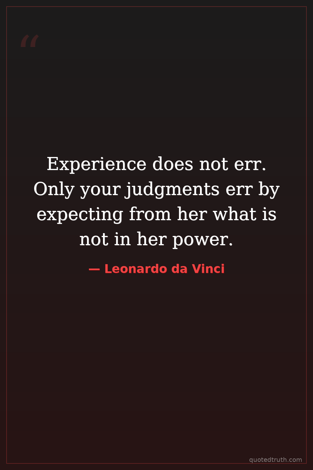Experience does not err. Only your judgments err by expecting from her what is not in her power.