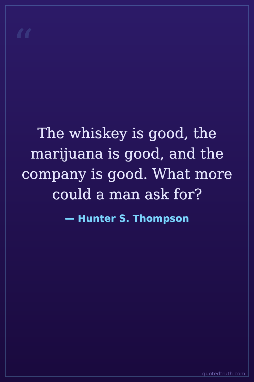 The whiskey is good, the marijuana is good, and the company is good. What more could a man ask for?