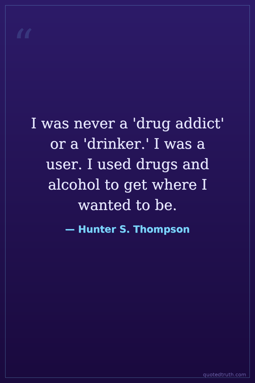 I was never a 'drug addict' or a 'drinker.' I was a user. I used drugs and alcohol to get where I wanted to be.