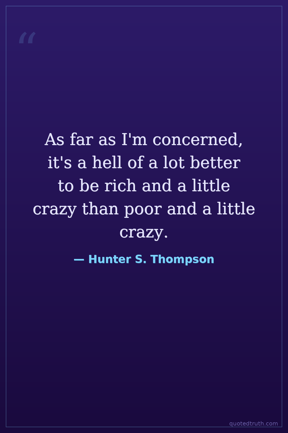 As far as I'm concerned, it's a hell of a lot better to be rich and a little crazy than poor and a little crazy.