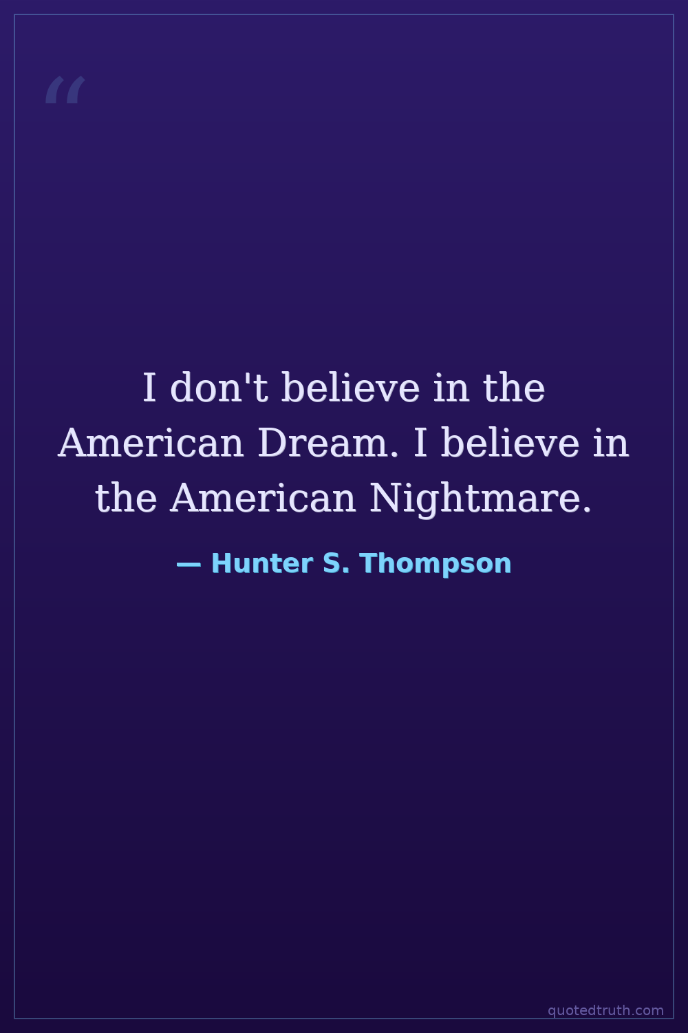 I don't believe in the American Dream. I believe in the American Nightmare.