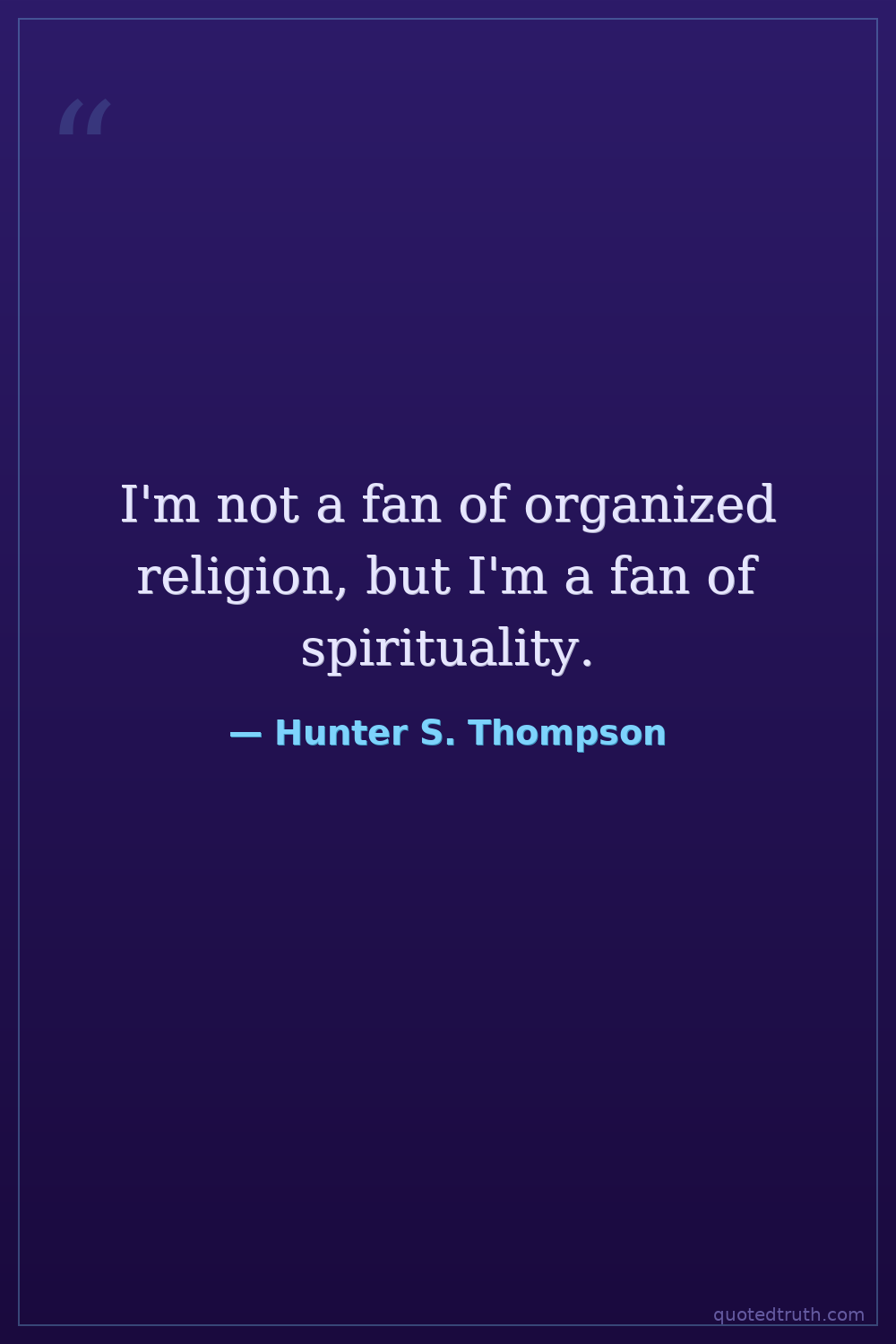 I'm not a fan of organized religion, but I'm a fan of spirituality.
