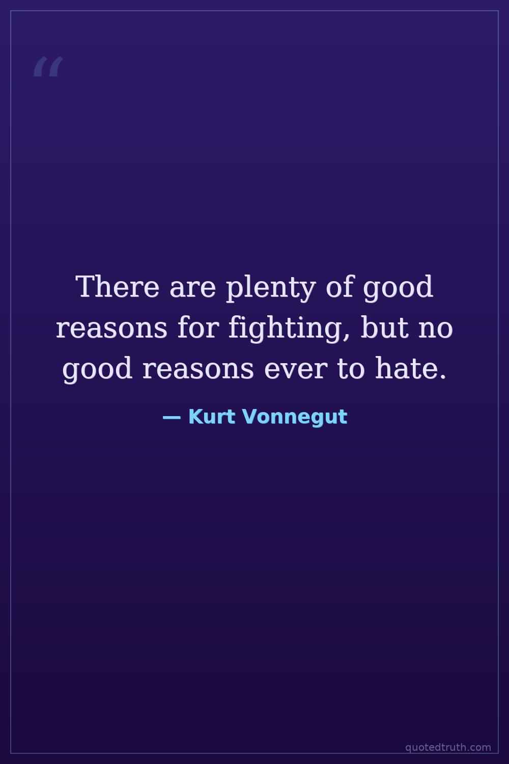 There are plenty of good reasons for fighting, but no good reasons ever to hate.