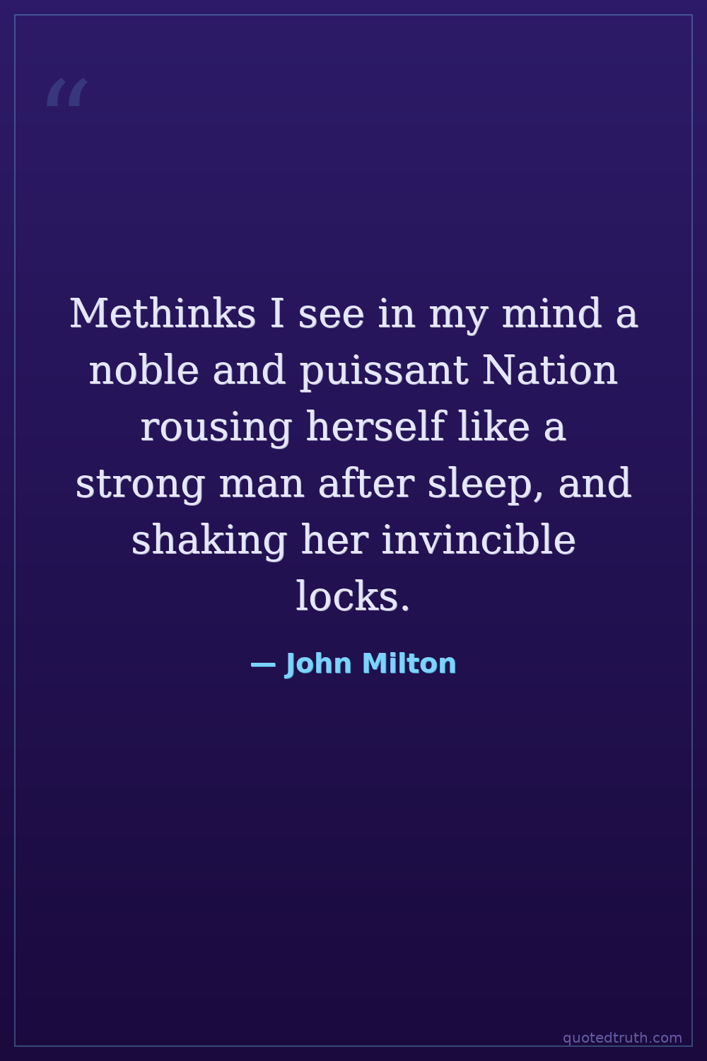 Methinks I see in my mind a noble and puissant Nation rousing herself like a strong man after sleep, and shaking her invincible locks.