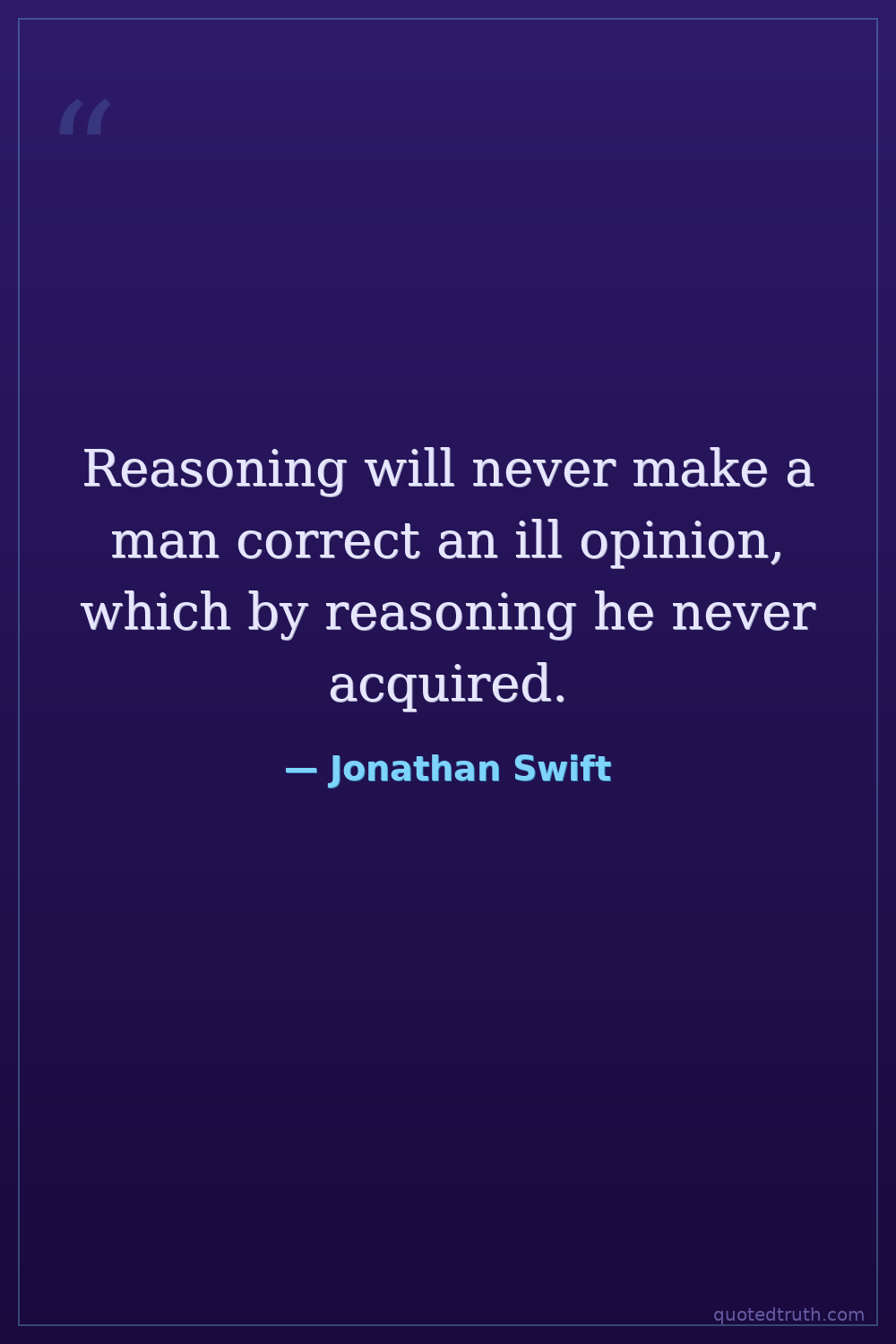 Reasoning will never make a man correct an ill opinion, which by reasoning he never acquired.