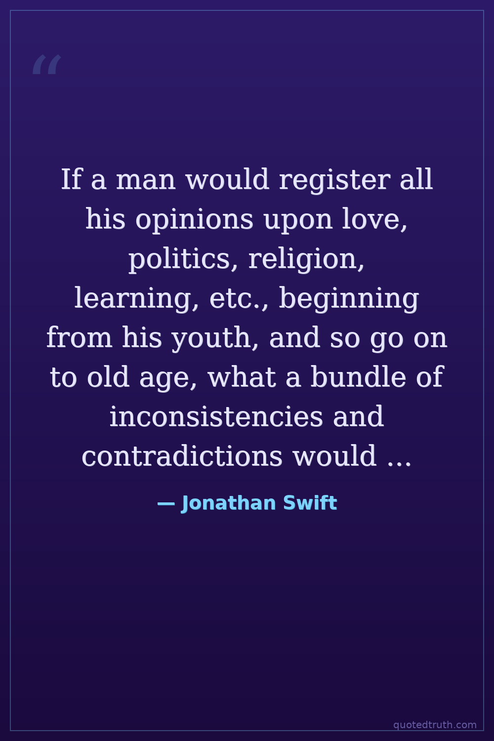 If a man would register all his opinions upon love, politics, religion, learning, etc., beginning from his youth, and so go on to old age, what a bundle of inconsistencies and contradictions would appear at last!