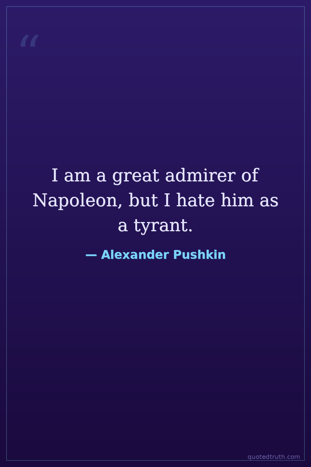 I am a great admirer of Napoleon, but I hate him as a tyrant.