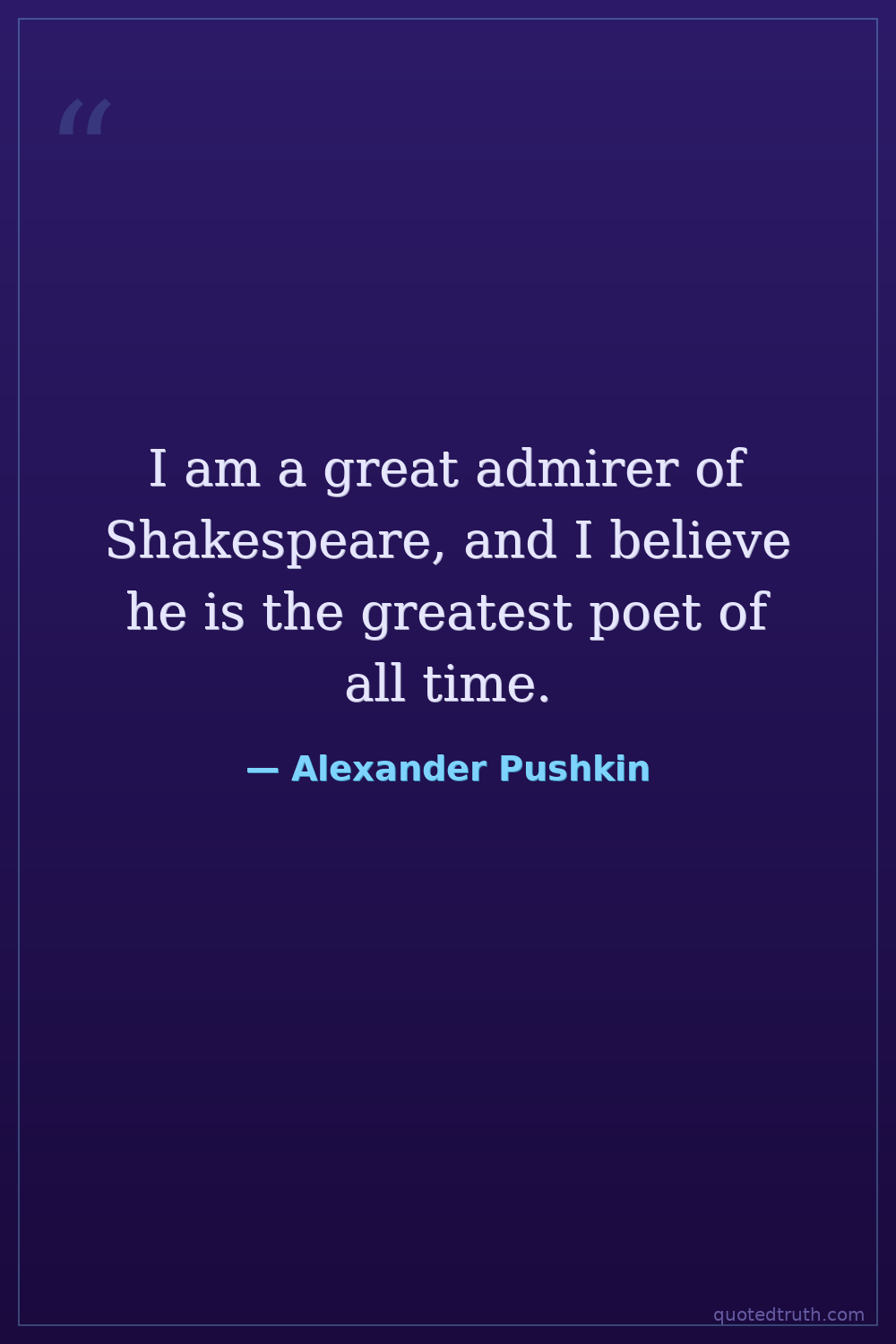 I am a great admirer of Shakespeare, and I believe he is the greatest poet of all time.