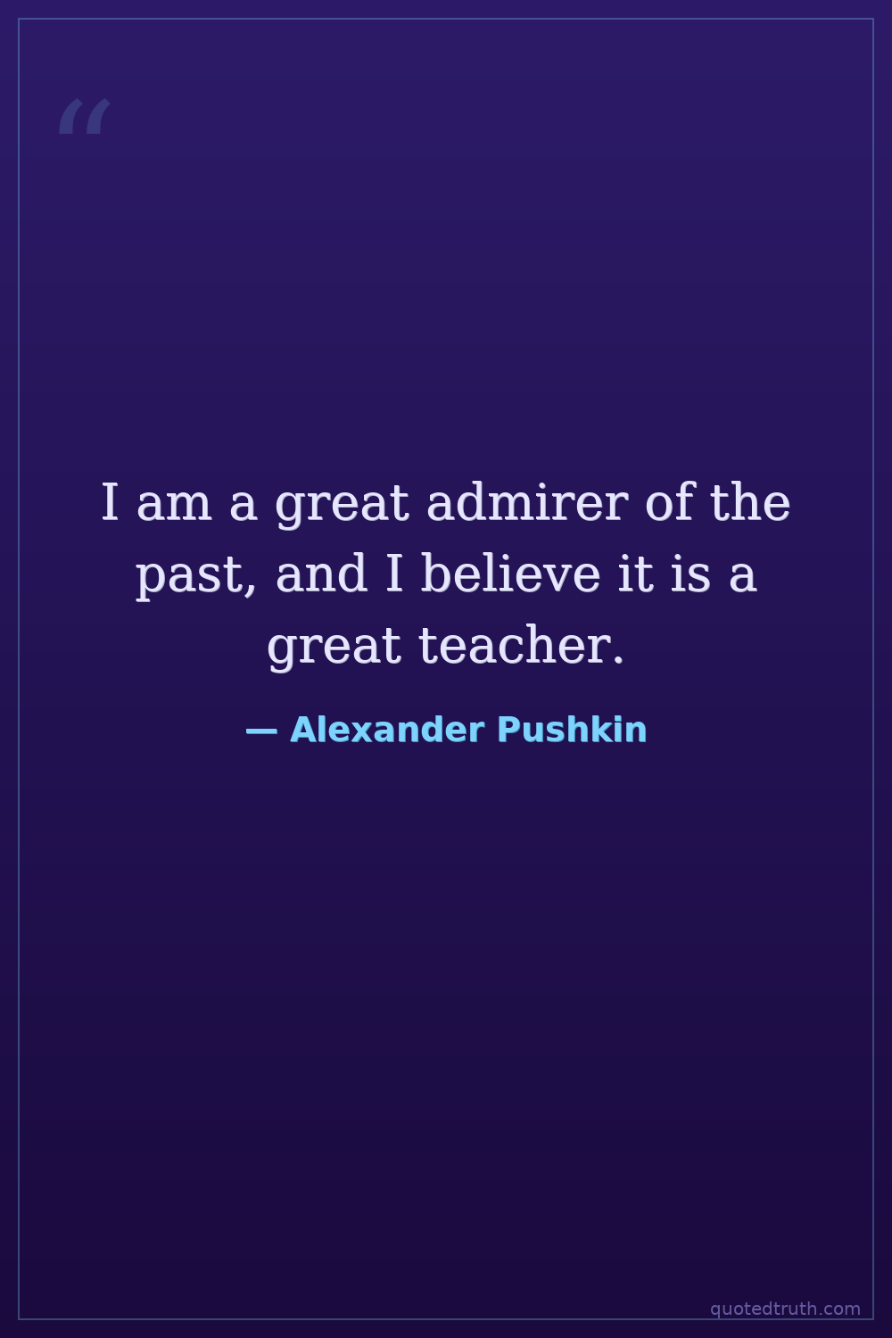 I am a great admirer of the past, and I believe it is a great teacher.