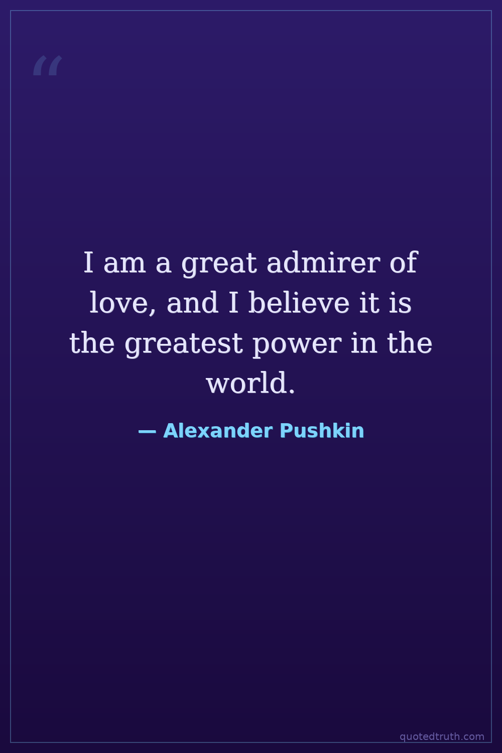 I am a great admirer of love, and I believe it is the greatest power in the world.