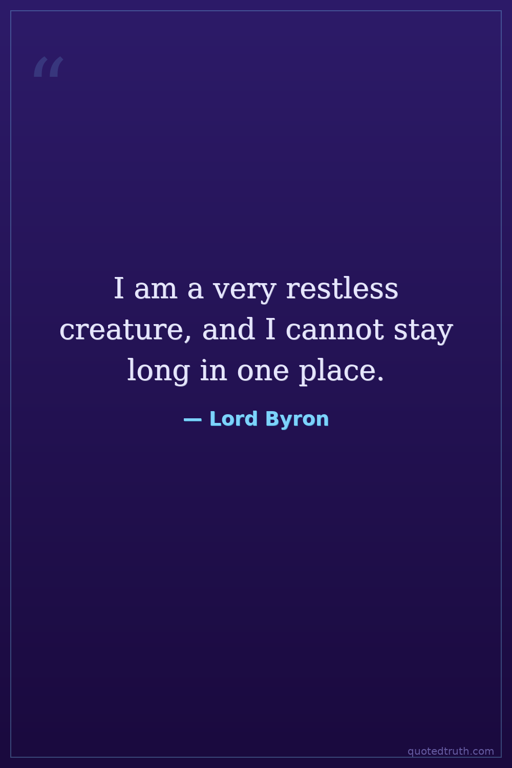 I am a very restless creature, and I cannot stay long in one place.