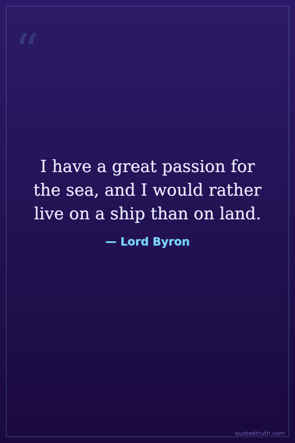 I have a great passion for the sea, and I would rather live on a ship than on land.