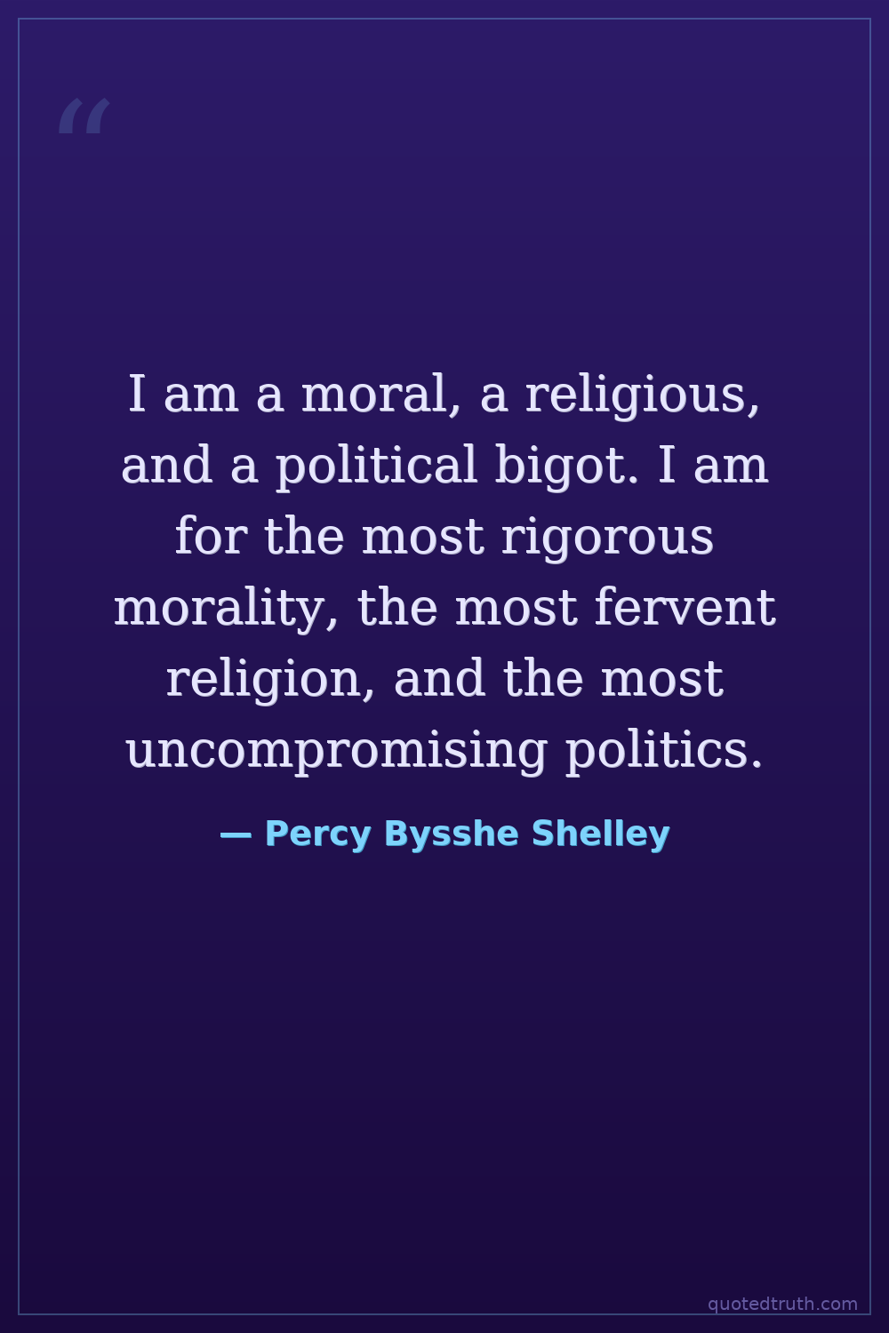 I am a moral, a religious, and a political bigot. I am for the most rigorous morality, the most fervent religion, and the most uncompromising politics.