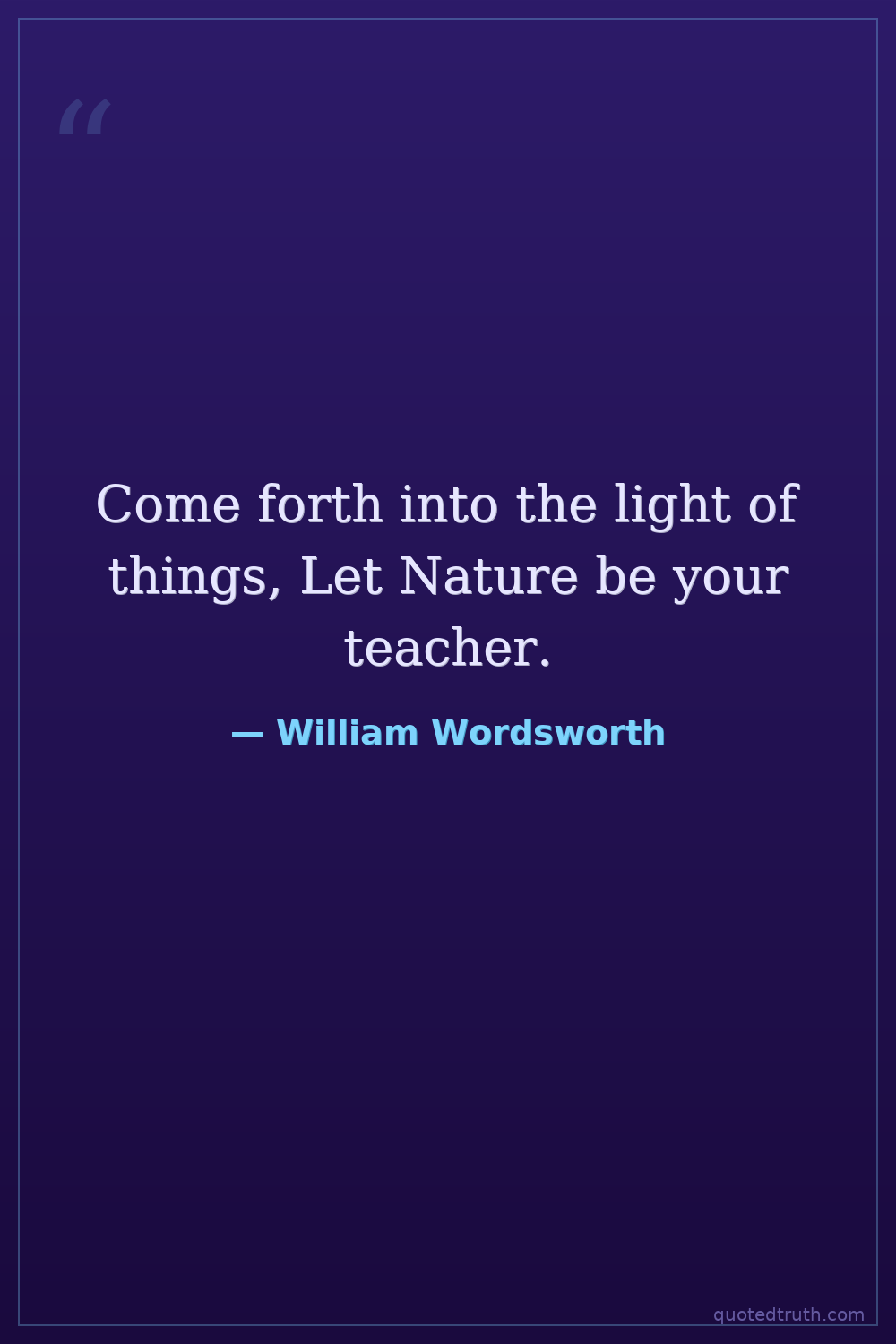 Come forth into the light of things, Let Nature be your teacher.