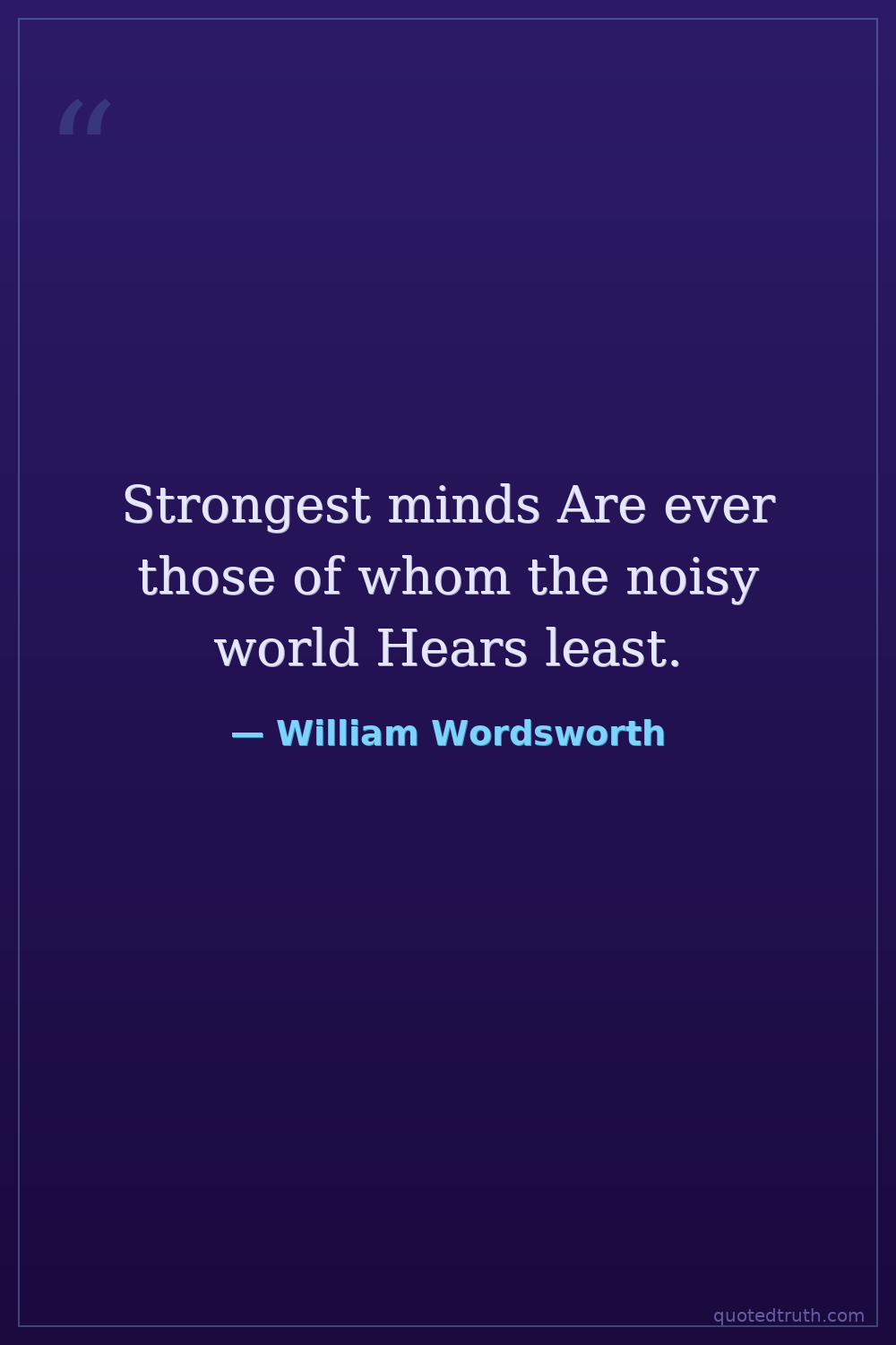 Strongest minds Are ever those of whom the noisy world Hears least.