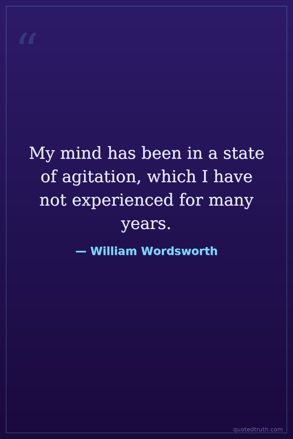My mind has been in a state of agitation, which I have not experienced for many years.