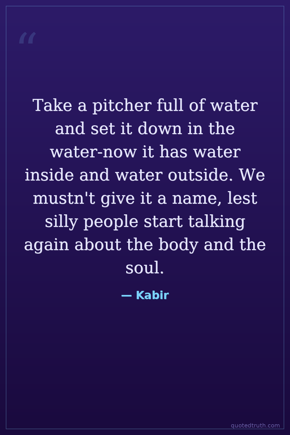 Take a pitcher full of water and set it down in the water-now it has water inside and water outside. We mustn't give it a name, lest silly people start talking again about the body and the soul.