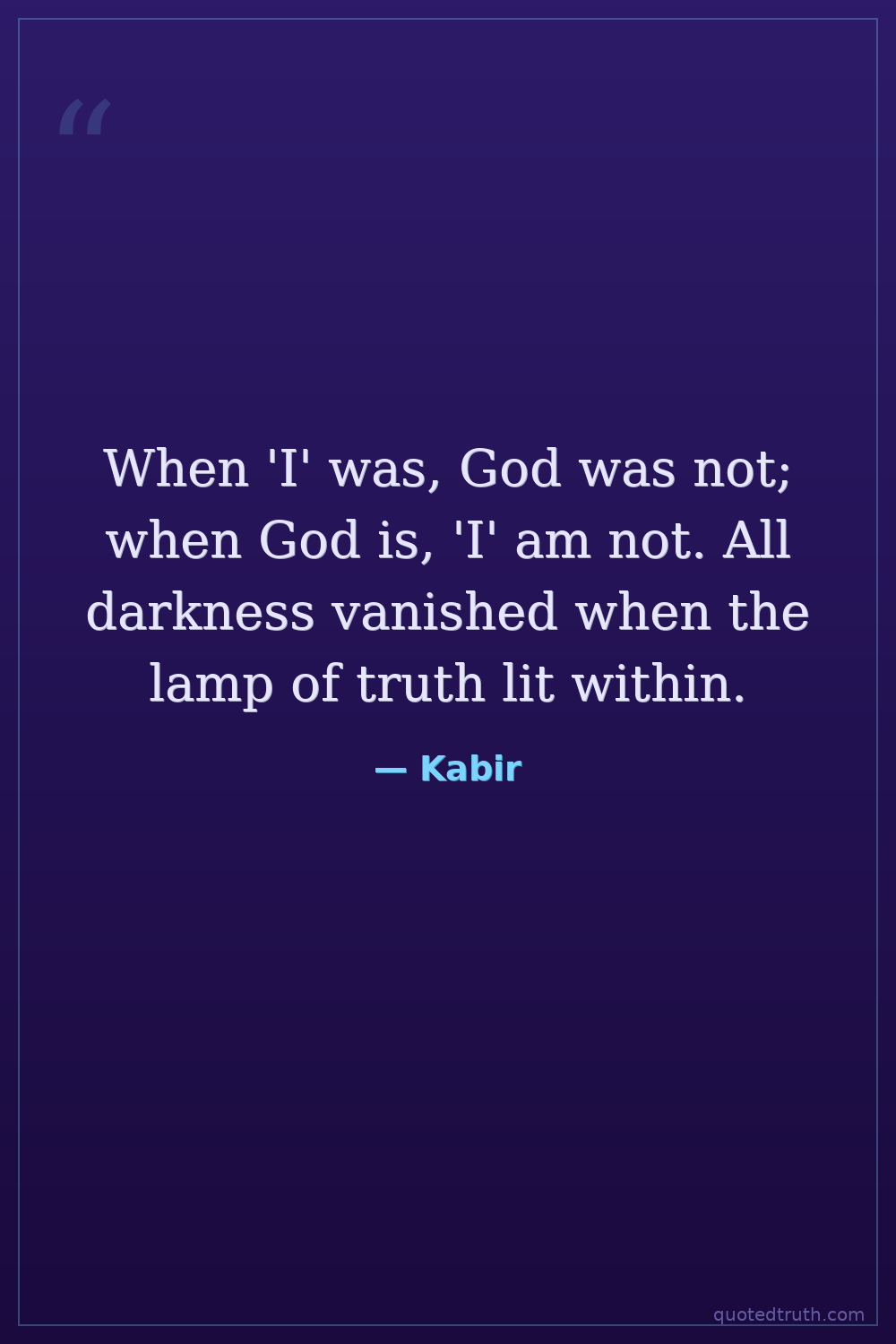 When 'I' was, God was not; when God is, 'I' am not. All darkness vanished when the lamp of truth lit within.