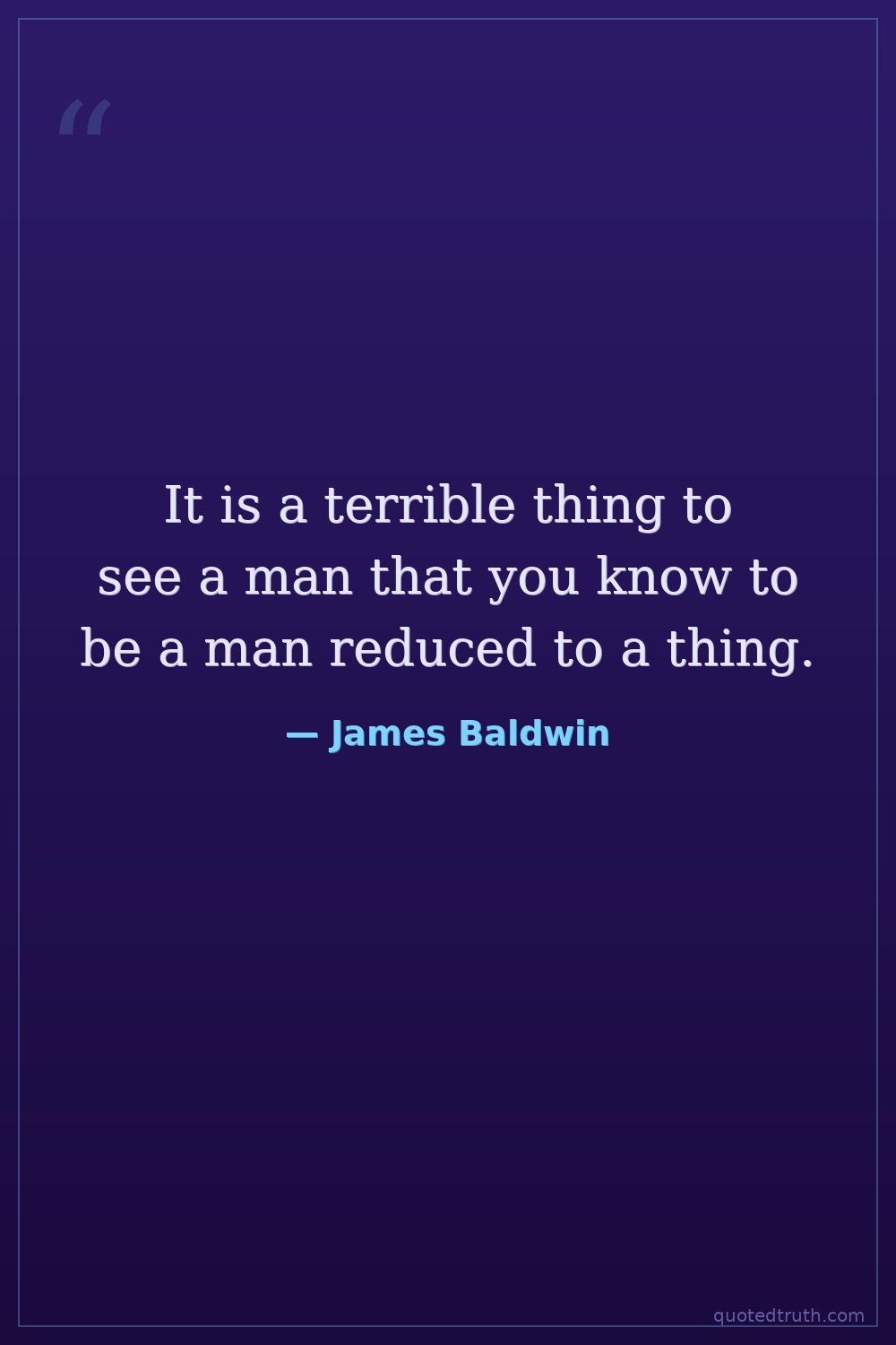 It is a terrible thing to see a man that you know to be a man reduced to a thing.