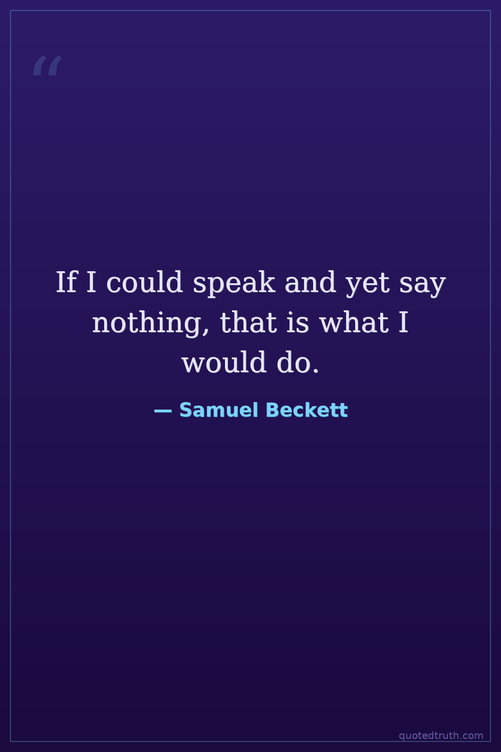 If I could speak and yet say nothing, that is what I would do.