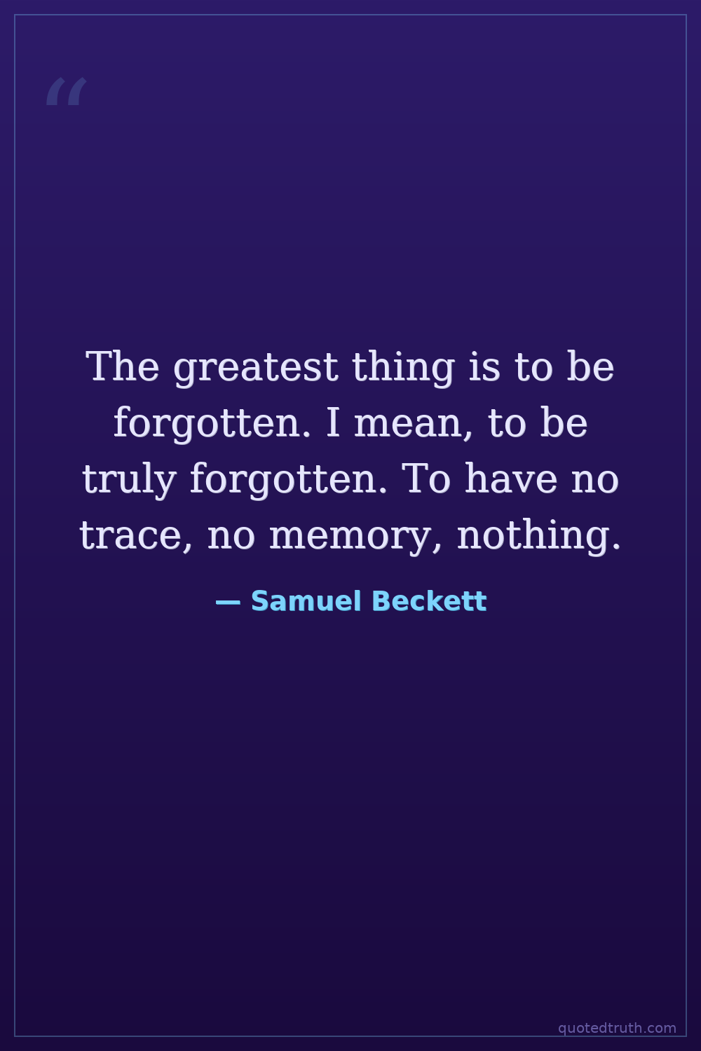 The greatest thing is to be forgotten. I mean, to be truly forgotten. To have no trace, no memory, nothing.