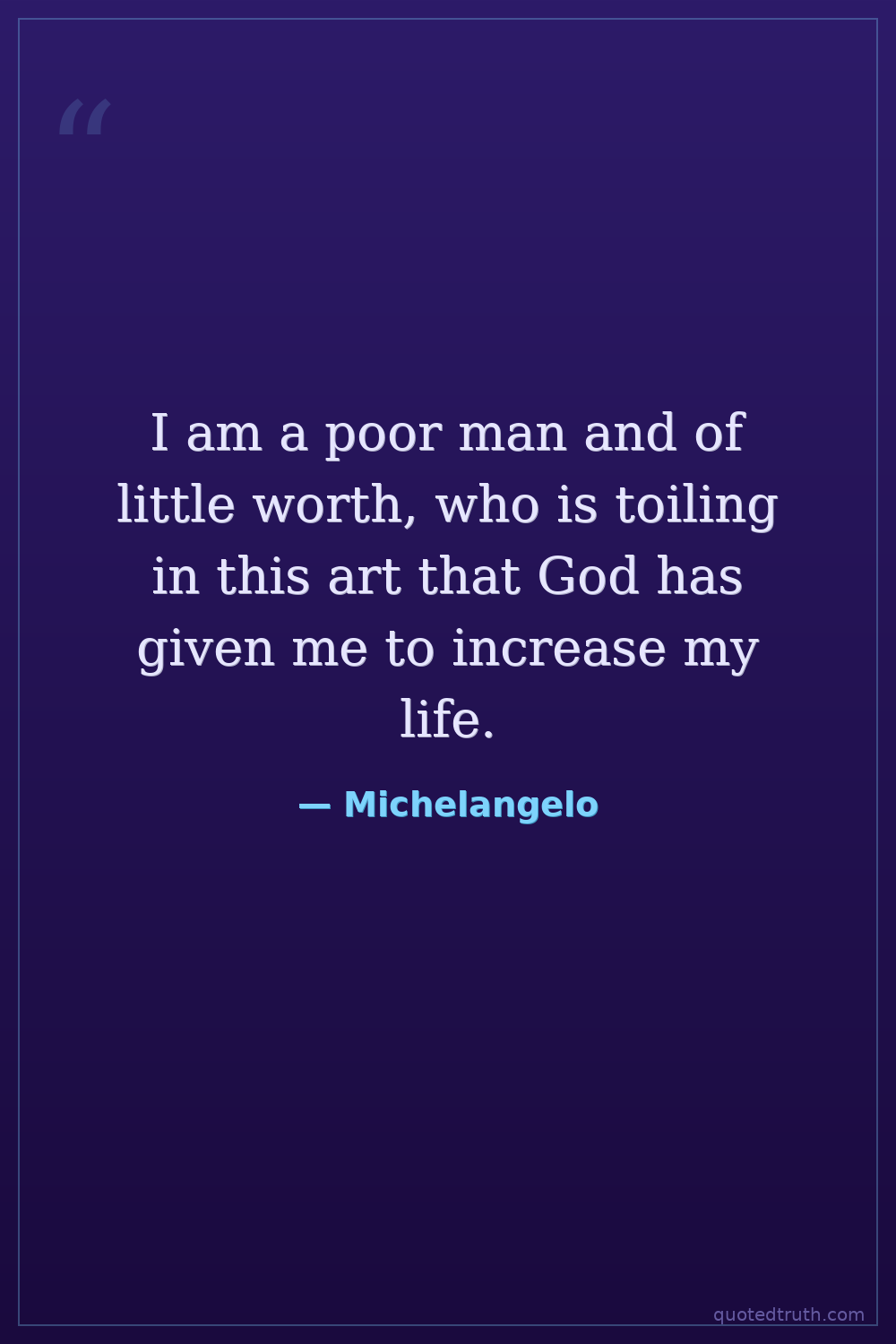 I am a poor man and of little worth, who is toiling in this art that God has given me to increase my life.