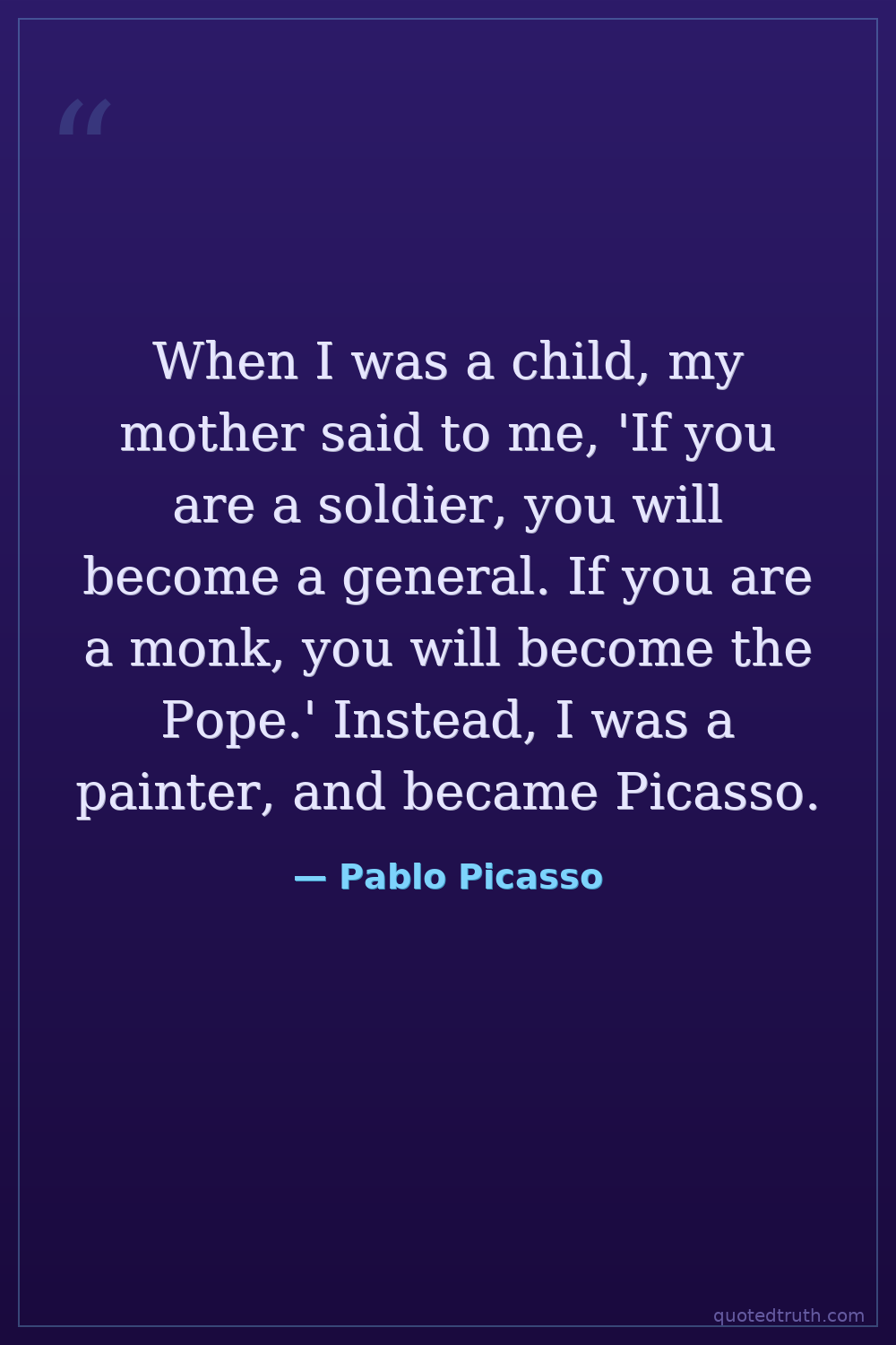 When I was a child, my mother said to me, 'If you are a soldier, you will become a general. If you are a monk, you will become the Pope.' Instead, I was a painter, and became Picasso.