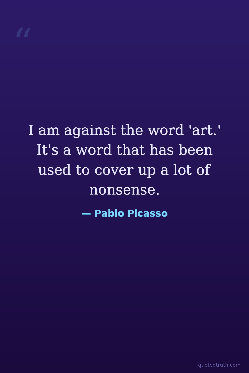 I am against the word 'art.' It's a word that has been used to cover up a lot of nonsense.
