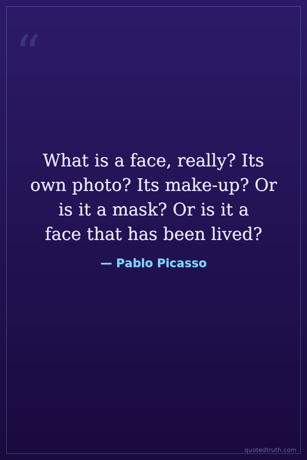 What is a face, really? Its own photo? Its make-up? Or is it a mask? Or is it a face that has been lived?