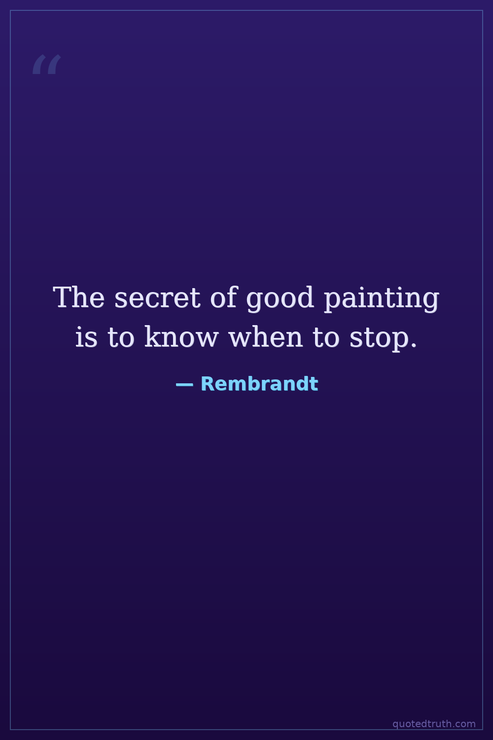 Philosophical"Of course you will say that I ought to be practical and ought to try and paint the way they want me to paint. Well, I will tell you a secret. I have tried and I have tried very hard, but I can't do it…"