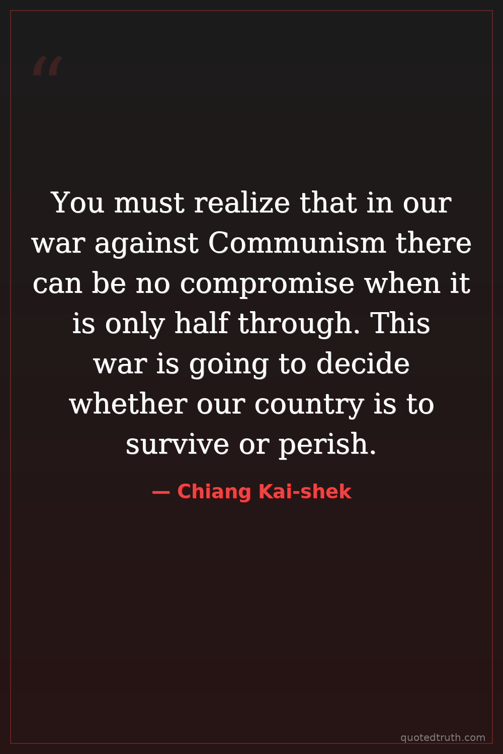 You must realize that in our war against Communism there can be no compromise when it is only half through. This war is going to decide whether our country is to survive or perish.