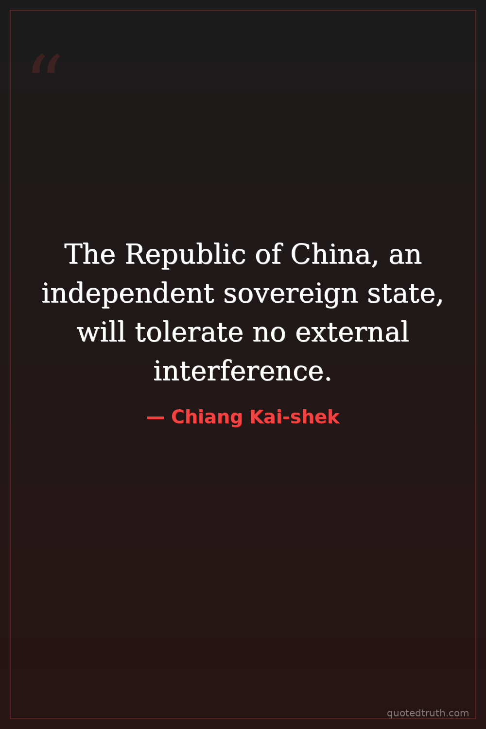 The Republic of China, an independent sovereign state, will tolerate no external interference.
