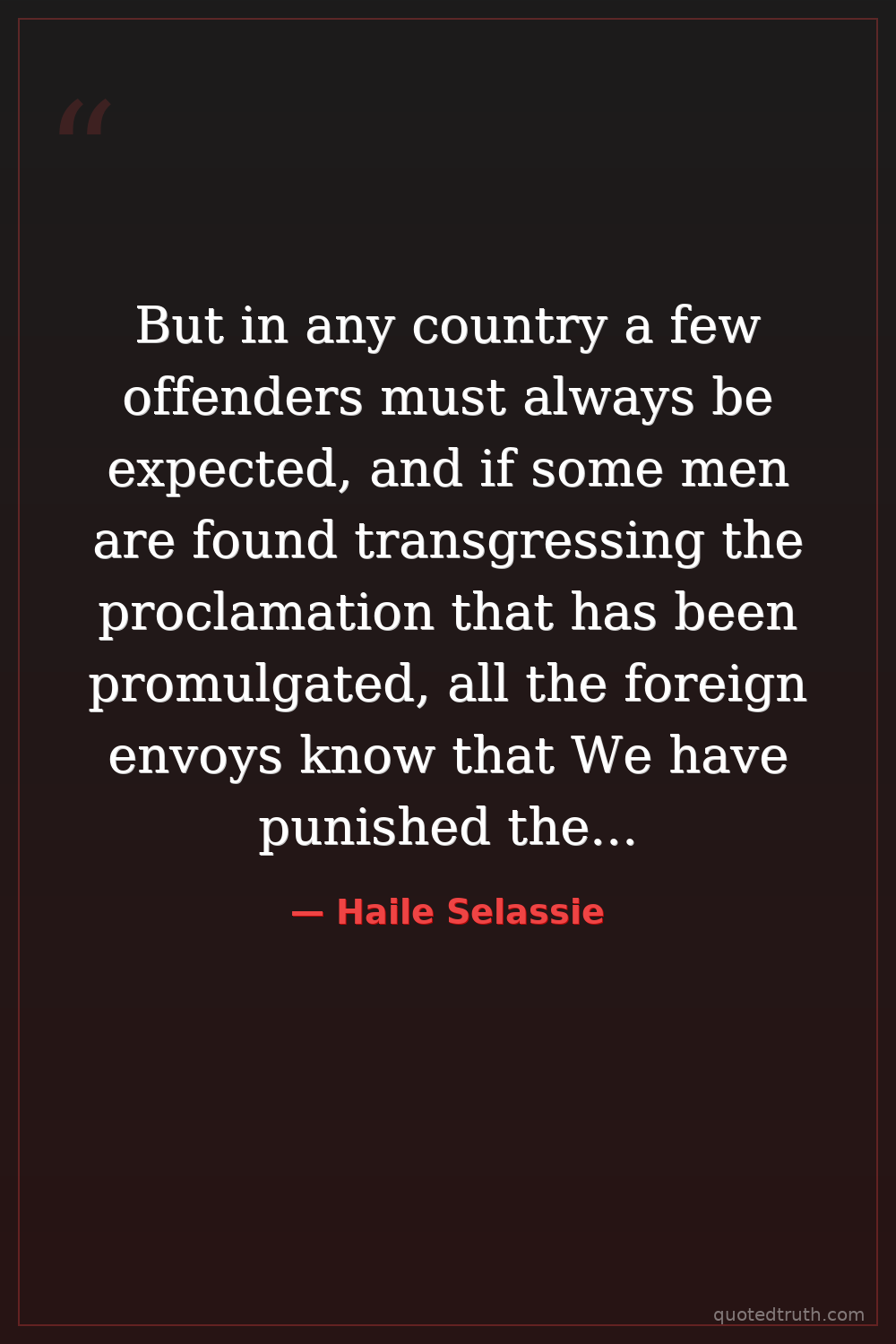 But in any country a few offenders must always be expected, and if some men are found transgressing the proclamation that has been promulgated, all the foreign envoys know that We have punished them even with the death penalty. Therefore, Our conscience does not rebuke Us, for We have done unceasingly everything possible as regards the liberation of the slaves.
