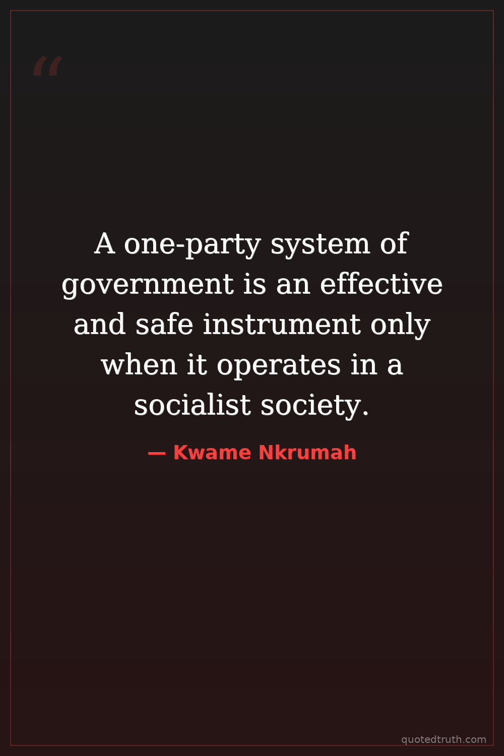 A one-party system of government is an effective and safe instrument only when it operates in a socialist society.