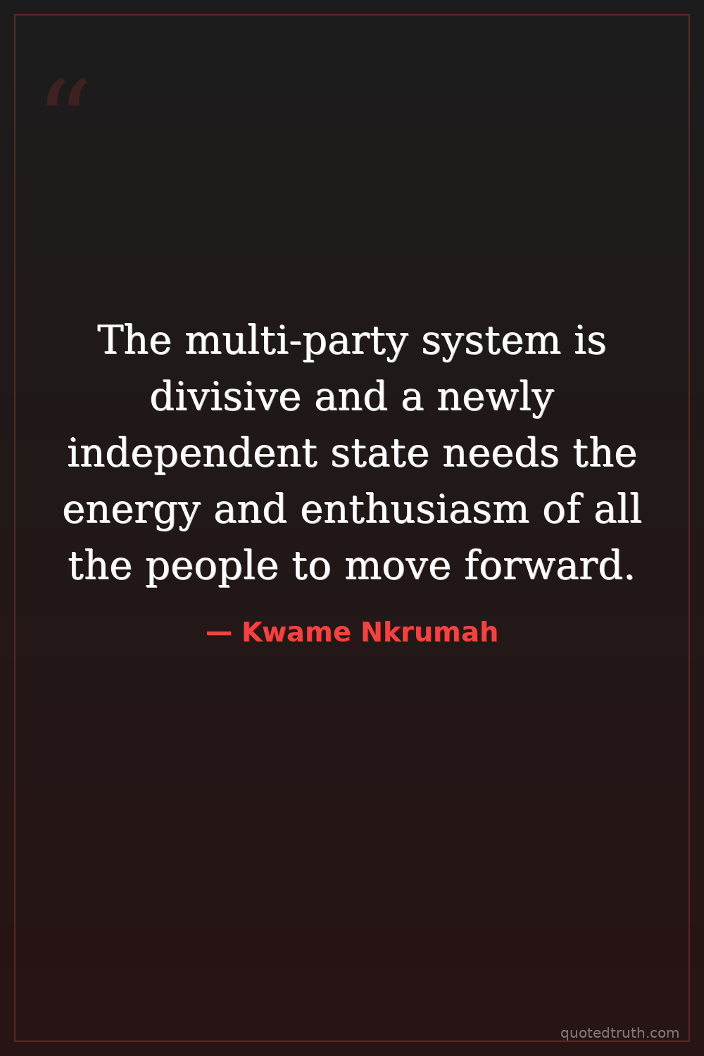 Controversial"I repeat that a one-party state can only function for the good of the people within the framework of a socialist state or in a developing state with a socialist programme. The government governs throu…"