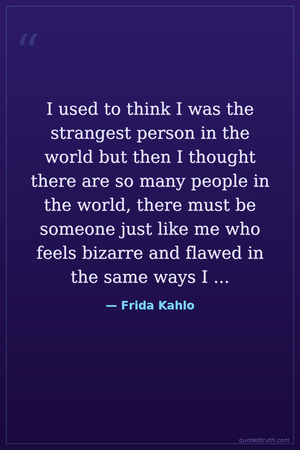 I used to think I was the strangest person in the world but then I thought there are so many people in the world, there must be someone just like me who feels bizarre and flawed in the same ways I do. I would imagine her, and imagine that she also must be out there thinking of me. Well, I hope that if you are out there and reading this and know that, yes, it’s true I’m here, and I’m just as strange as you.