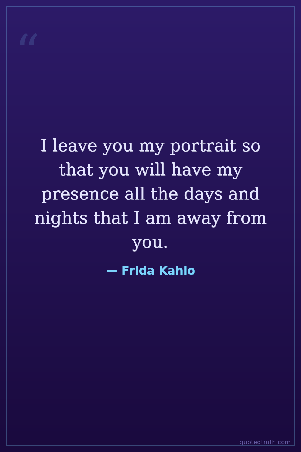 I leave you my portrait so that you will have my presence all the days and nights that I am away from you.