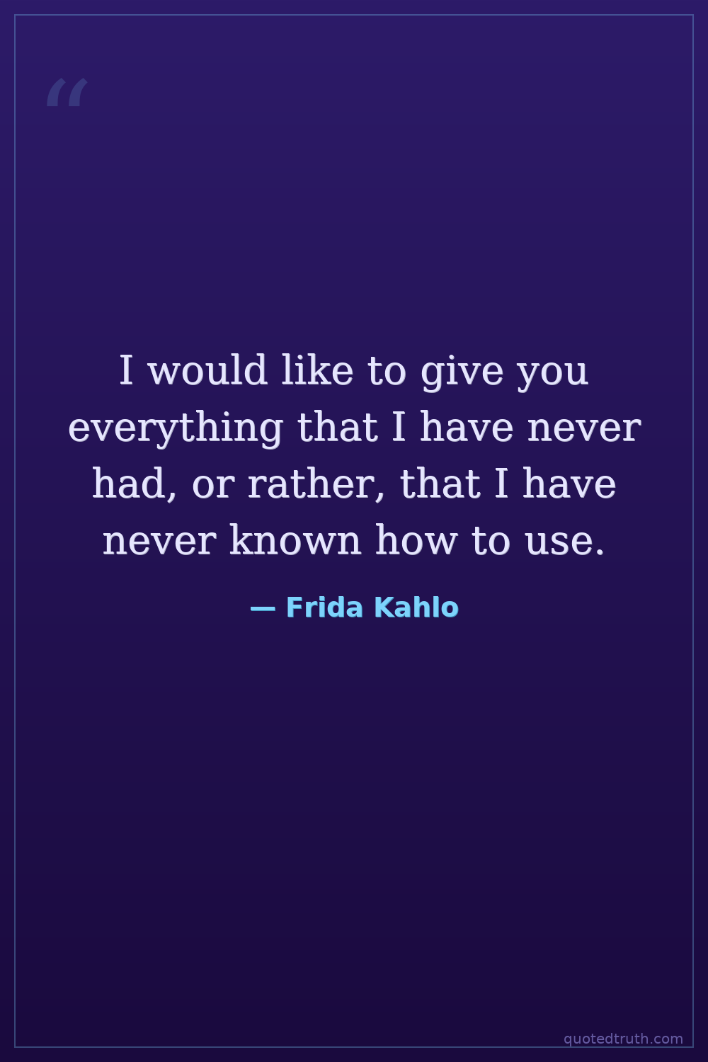 I would like to give you everything that I have never had, or rather, that I have never known how to use.