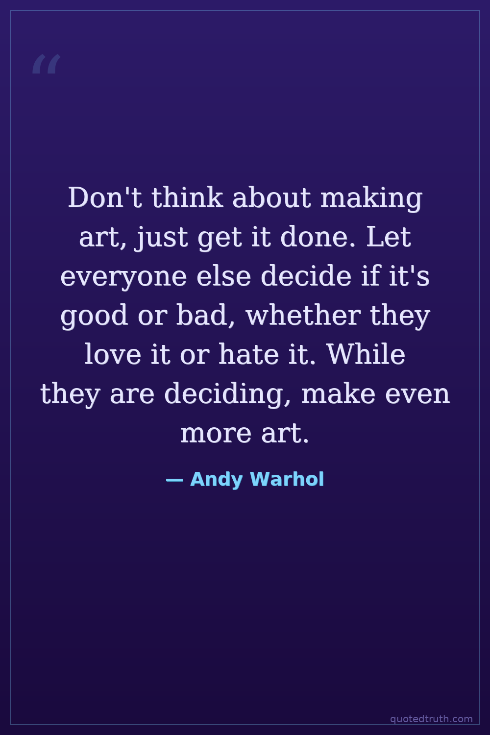 Don't think about making art, just get it done. Let everyone else decide if it's good or bad, whether they love it or hate it. While they are deciding, make even more art.
