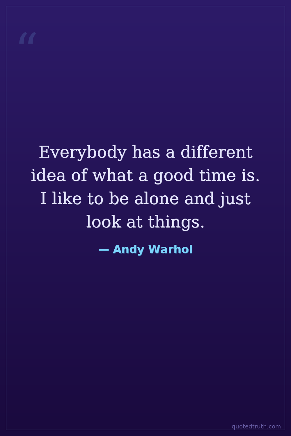 Everybody has a different idea of what a good time is. I like to be alone and just look at things.