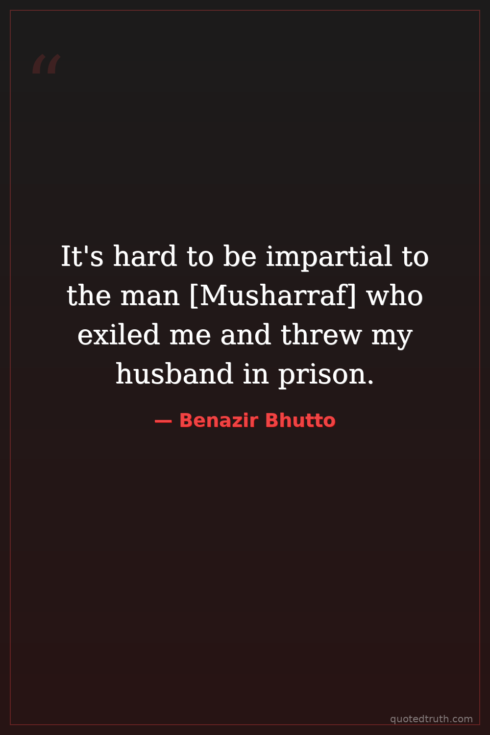 It's hard to be impartial to the man [Musharraf] who exiled me and threw my husband in prison.