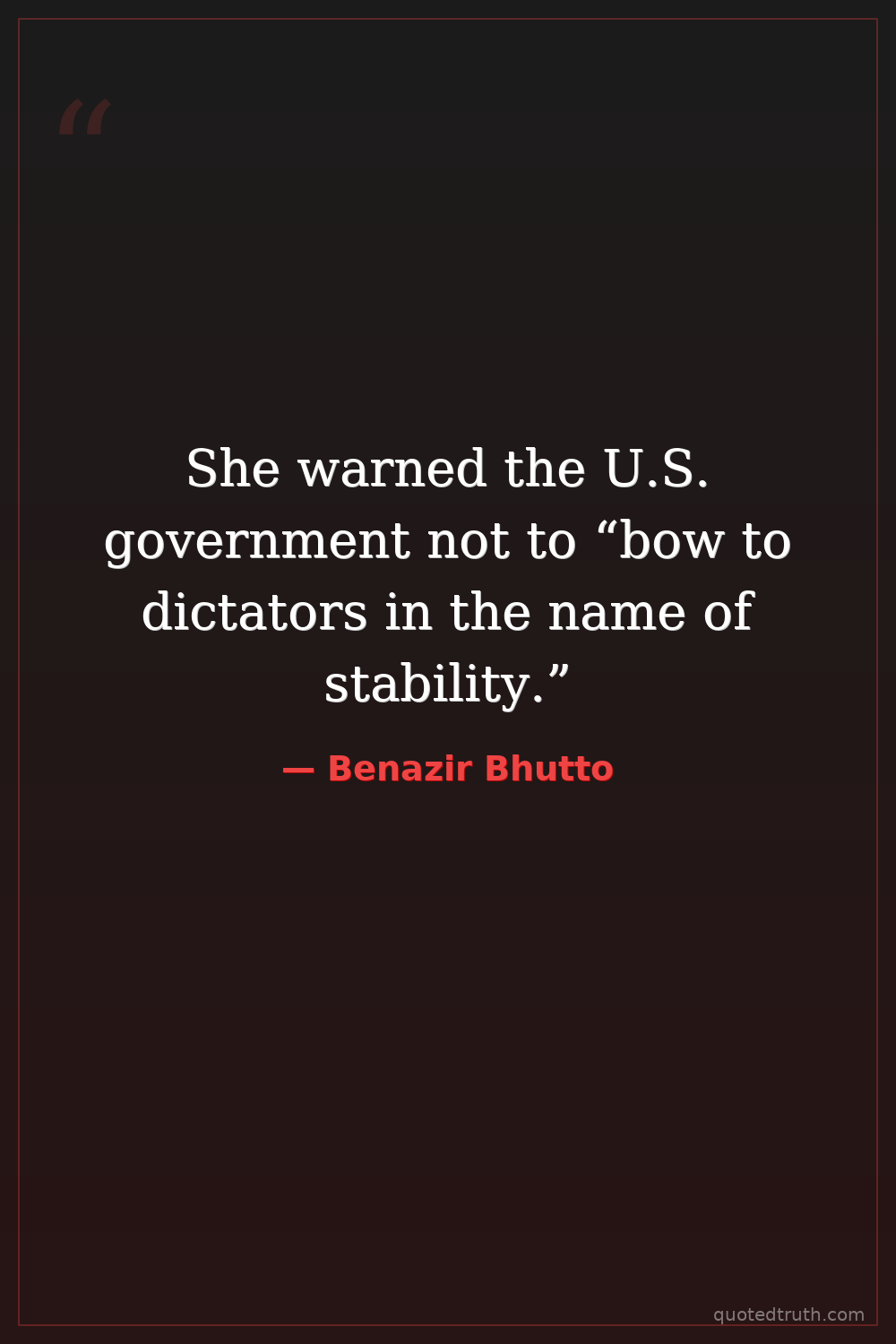 She warned the U.S. government not to “bow to dictators in the name of stability.”