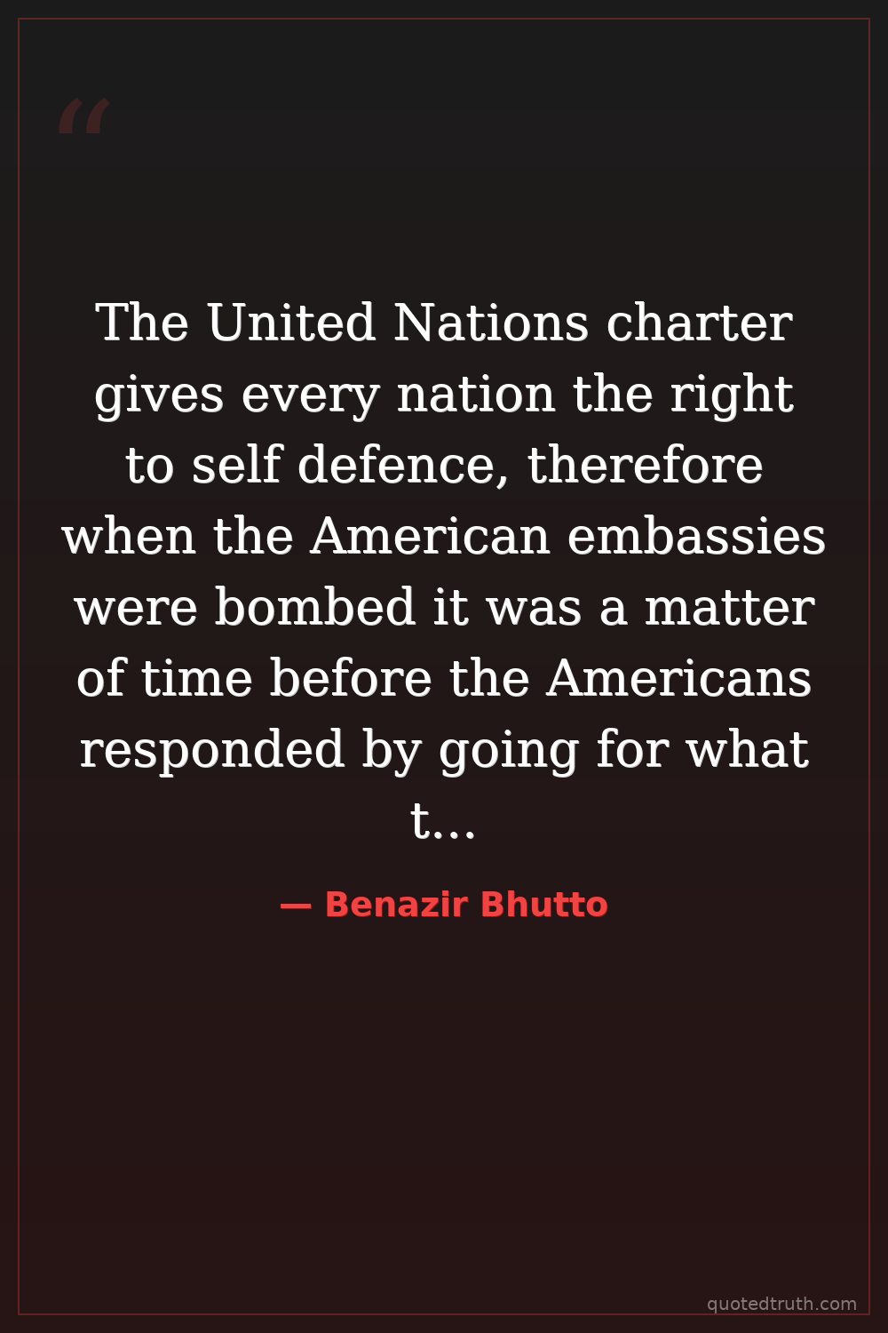 The United Nations charter gives every nation the right to self defence, therefore when the American embassies were bombed it was a matter of time before the Americans responded by going for what they suspected were the causes of the attack.